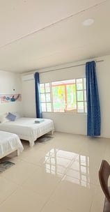 En nuestra habitación número dos, el espacio ha sido cuidadosamente diseñado para garantizar un sueño reparador para hasta cuatro personas. Con un clóset grande, tendrás la comodidad de organizar tus maletas sin preocuparte por el desorden. Cada rincón de la habitación ha sido pensado para ofrecerte la mejor experiencia durante tu estadía. Disfruta de la amplitud y la tranquilidad que proporciona, perfecta para relajarte después de un día lleno de actividades. Aquí, cada ocupante encontrará su lugar y podrá descansar plenamente, sintiéndose como en casa. Ven y vive una experiencia de confort y bienestar en un espacio donde cada detalle cuenta.